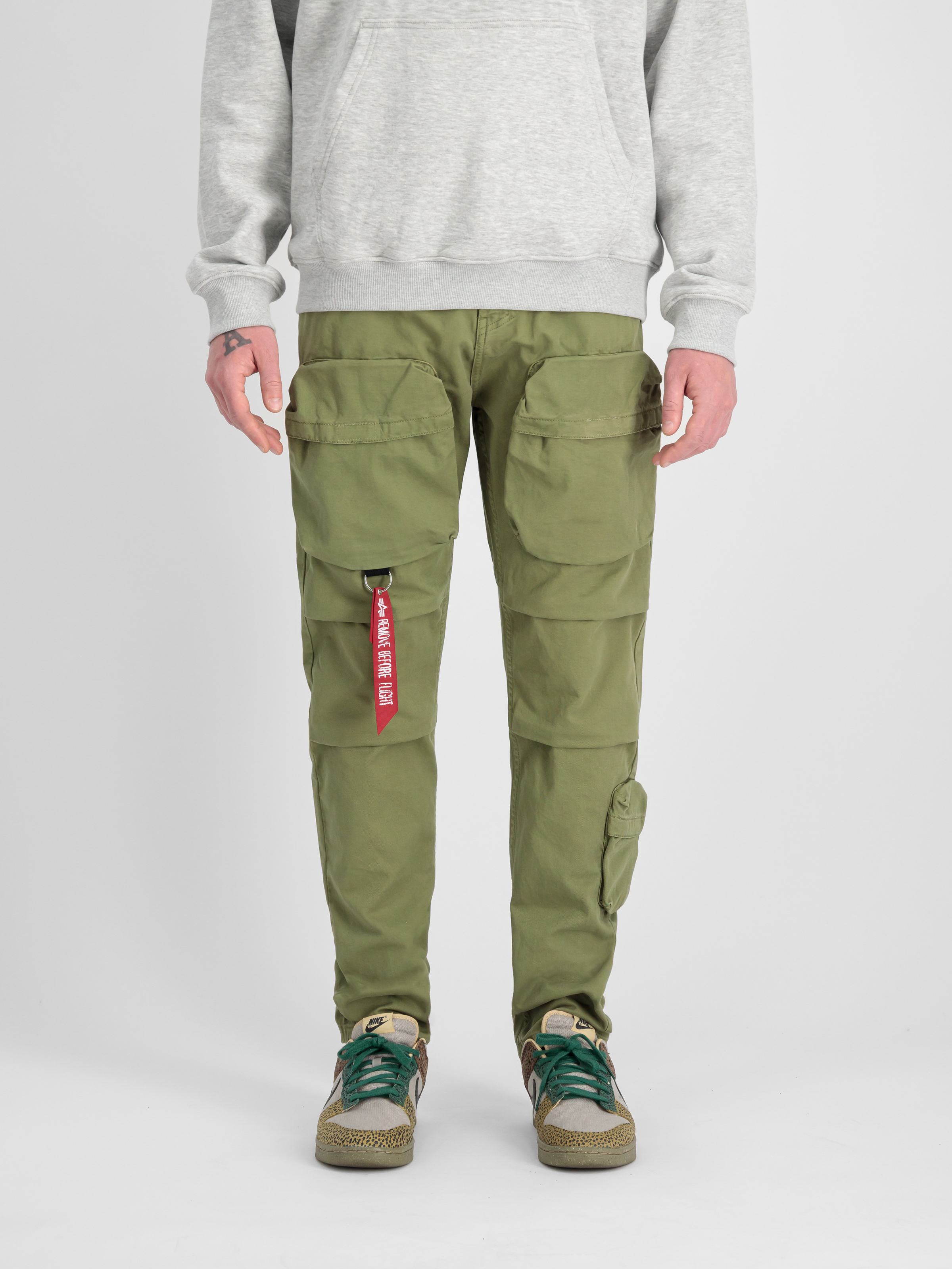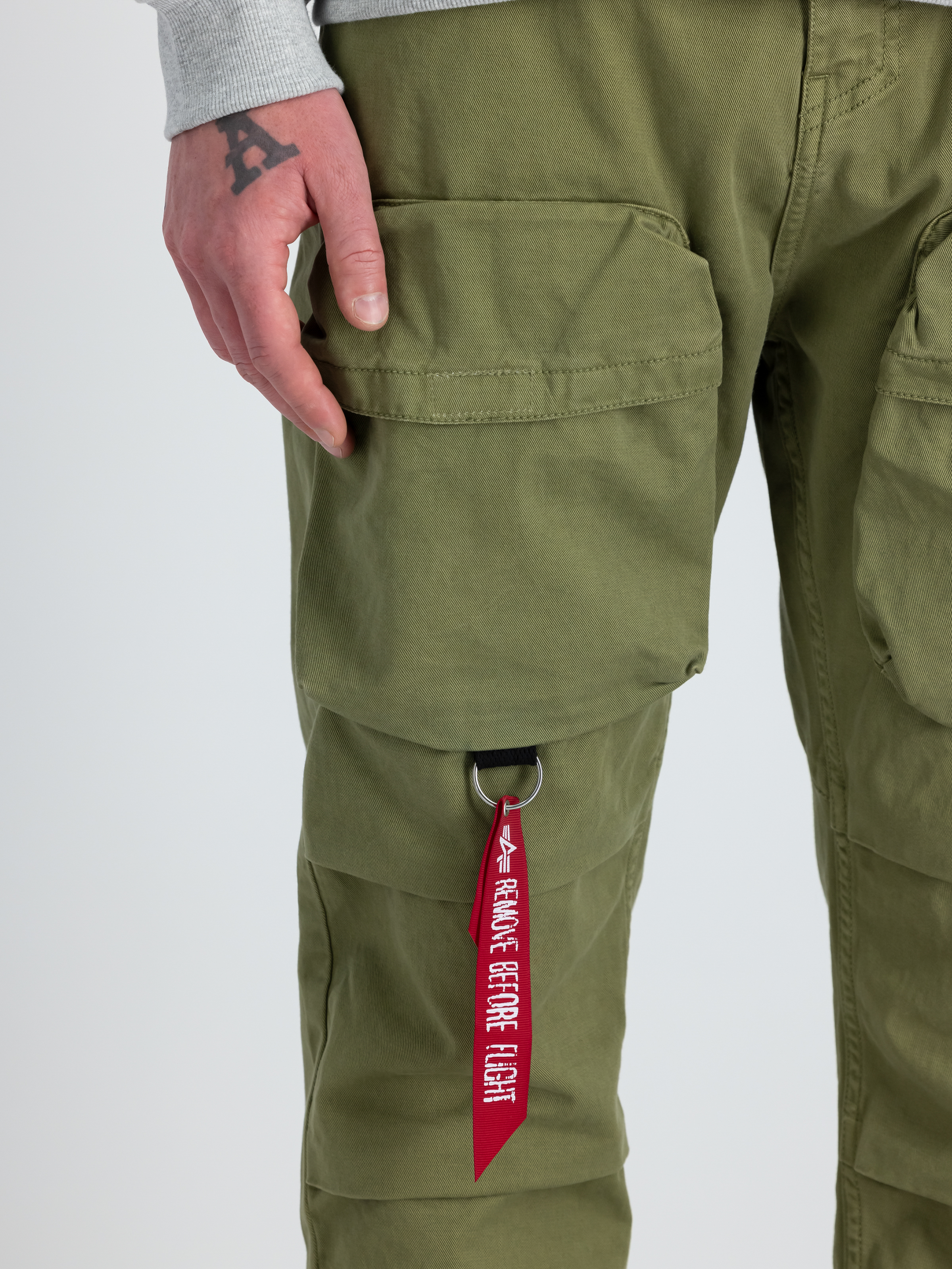 Auch an Details wurde gedacht: Eine Gürtelschlaufe ermöglicht es Dir, Deinen Lieblingsgürtel zu tragen und so den Sitz der Hose individuell anzupassen. Ein weiteres Highlight ist das Flag Label an der kleinen Cargotasche, welches die Hose zu einem echten Blickfang macht.